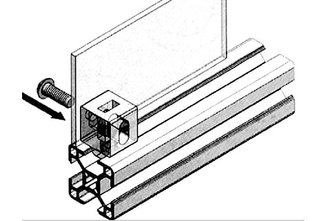 將此連接塊尾端直接插入型材槽坑內(nèi),轉(zhuǎn)動(dòng)90度后即緊密固定在型材上,然后就可在型材上安裝有機(jī)玻璃等各種面板,再用螺栓鎖緊,安裝簡潔,拆卸方便。