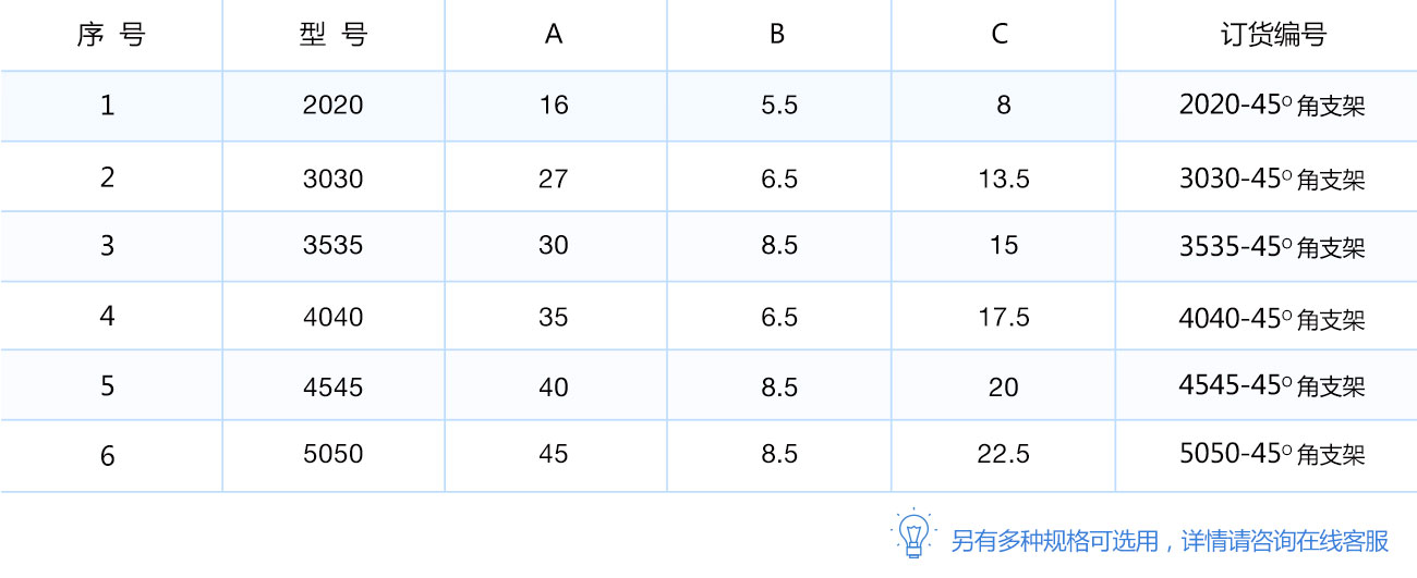45度支架是從擠壓型材上截取料段,經(jīng)鉆孔加工而成。表面銀白陽極氧化(端面未氧化),連接強度高。靈活性和通用性能好,安裝簡單方便。主要用于型材的45度角連接。