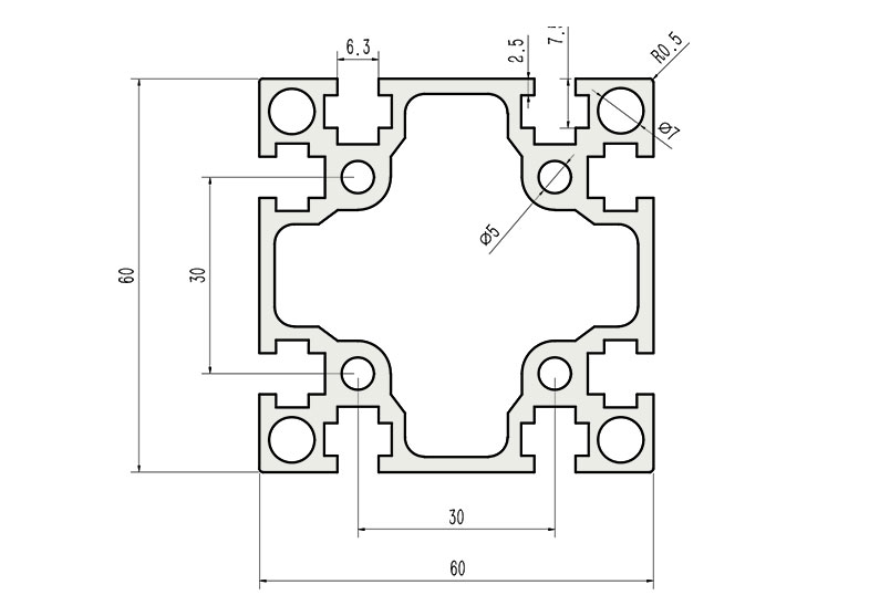 JL-6-6060G,6mm 槽寬工業(yè)鋁型材系列