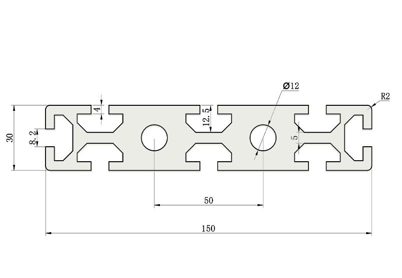 適用于應(yīng)力及強(qiáng)度較大的框架組合結(jié)構(gòu),它的外型采用圓角過(guò)渡,表面經(jīng)過(guò)陽(yáng)極氧化處理,高雅美觀并抗腐蝕,它通常采用M8X20高強(qiáng)度專用螺栓加彈性扣件的內(nèi)部連接方式,堅(jiān)固而又可靠,是工業(yè)框架應(yīng)用較為廣泛的型材之一。