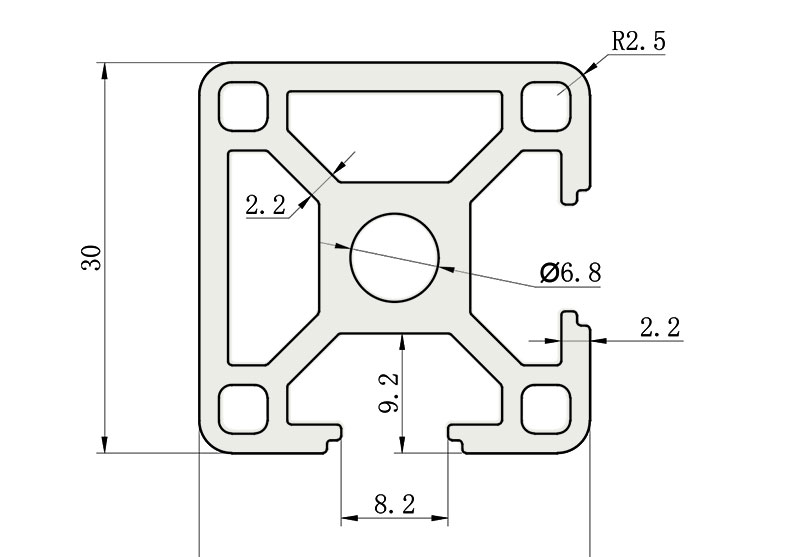 適用于應(yīng)力及強度較大的框架組合結(jié)構(gòu),它的外型采用圓角過渡,表面經(jīng)過陽極氧化處理,高雅美觀并抗腐蝕,它通常采用M8X20高強度專用螺栓加彈性扣件的內(nèi)部連接方式,堅固而又可靠,是工業(yè)框架應(yīng)用較為廣泛的型材之一。