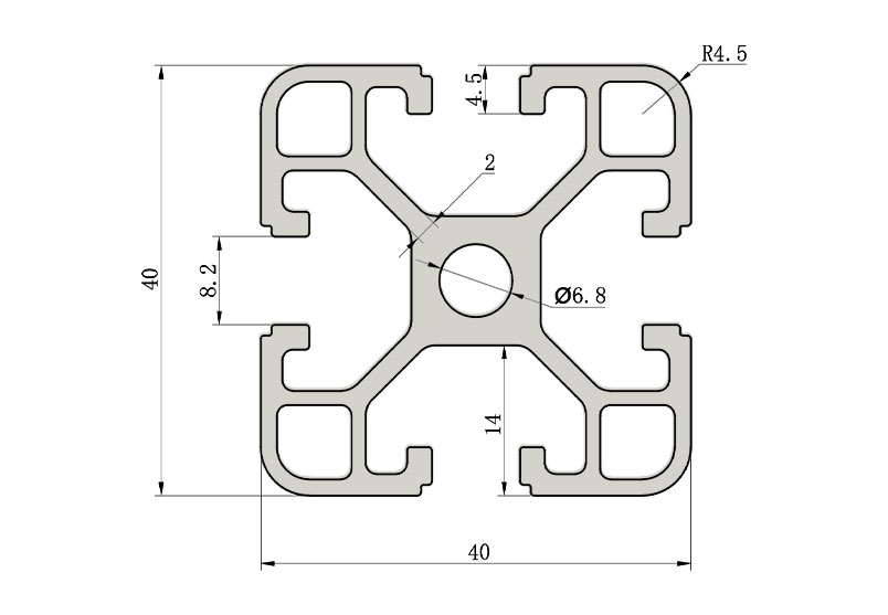 適用于應(yīng)力及強(qiáng)度較大的框架組合結(jié)構(gòu),它的外型采用圓角過(guò)渡,表面經(jīng)過(guò)陽(yáng)極氧化處理,高雅美觀并抗腐蝕,它通常采用M8X20高強(qiáng)度專用螺栓加彈性扣件的內(nèi)部連接方式,堅(jiān)固而又可靠,是工業(yè)框架應(yīng)用較為廣泛的型材之一。