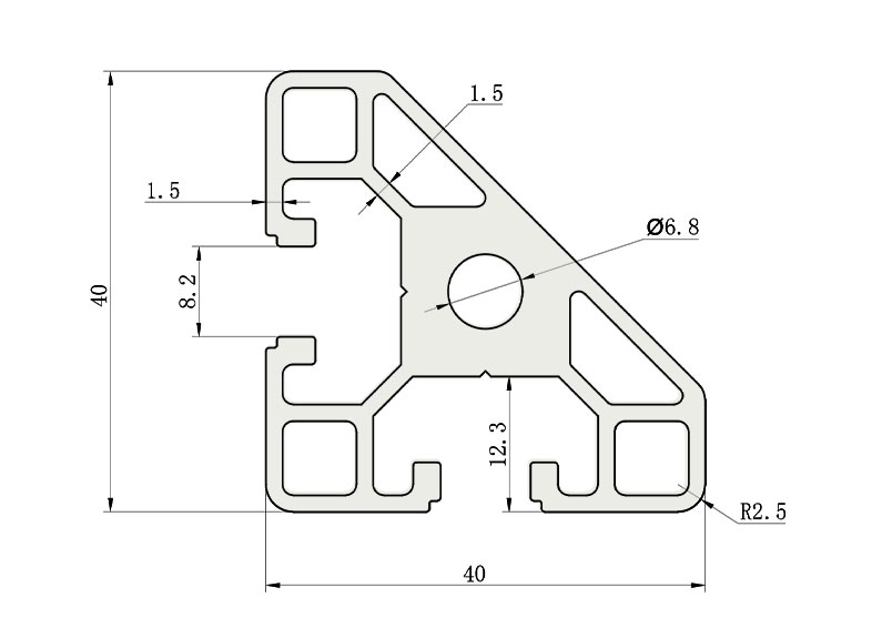 適用于應(yīng)力及強度較大的框架組合結(jié)構(gòu),它的外型采用圓角過渡,表面經(jīng)過陽極氧化處理,高雅美觀并抗腐蝕,它通常采用M8X20高強度專用螺栓加彈性扣件的內(nèi)部連接方式,堅固而又可靠,是工業(yè)框架應(yīng)用較為廣泛的型材之一。
