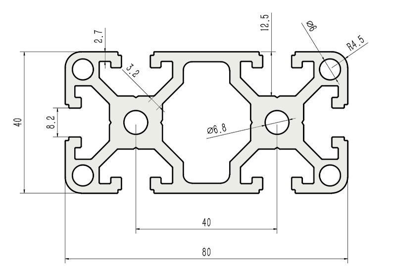 JL-8-4080EC,8mm 槽寬工業(yè)鋁型材系列